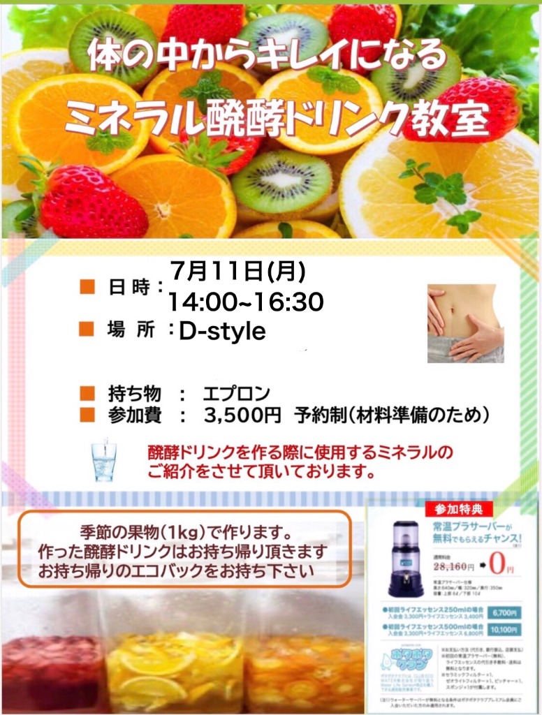 7月11日に第1回目となるミネラル発酵ドリンク教室が開催されます!